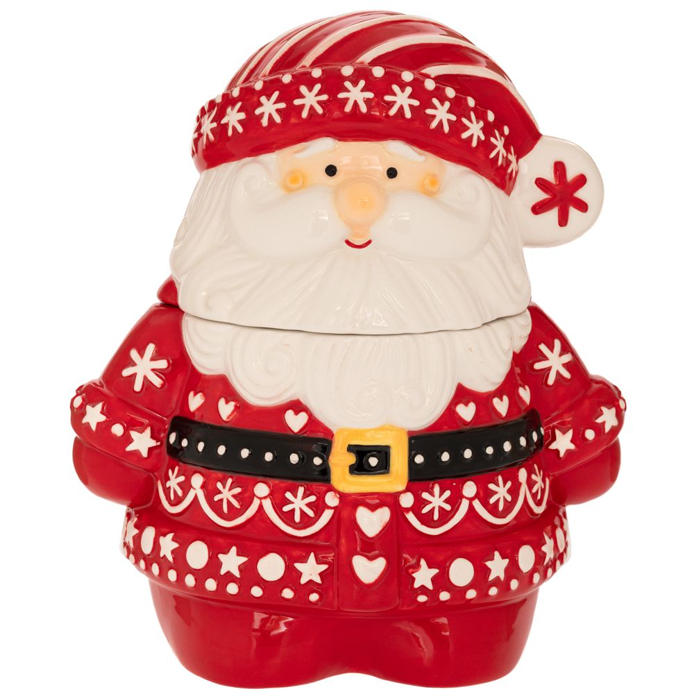 Add a jolly touch to your holiday kitchen with this charming Santa-shaped cookie jar! Crafted from high-quality ceramic and adorned with festive red and white details, this jar is perfect for storing your favorite Christmas treats — from cookies to candy canes.